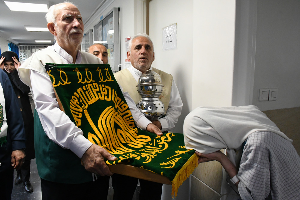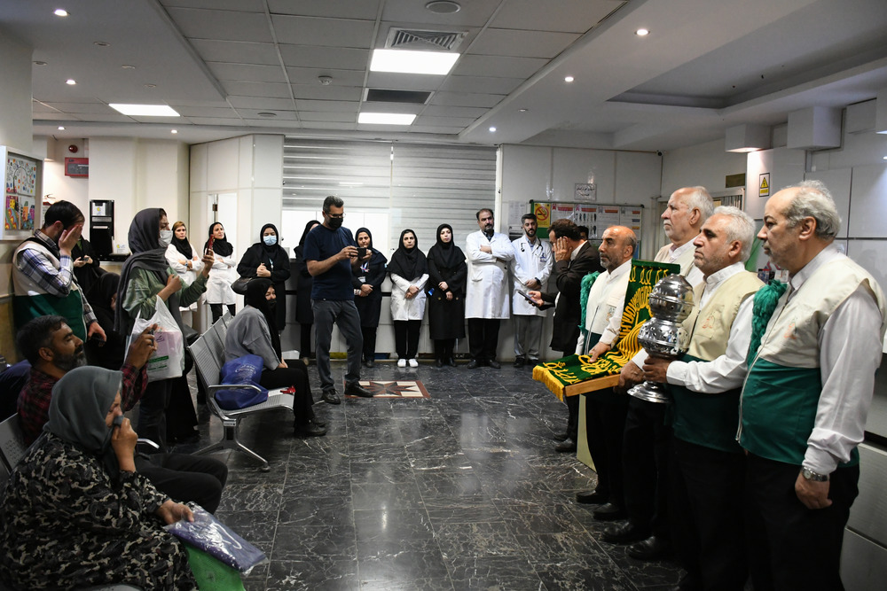 با ورود خدام حرم مطهر رضوی، فضای بیمارستان سراسر آکنده از شمیم معطر هشتمین اختر تابناک آسمان امامت و ولایت شد.