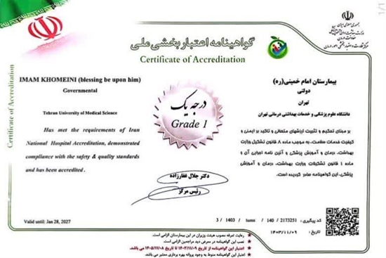 مجتمع بیمارستانی امام خمینی (ره) موفق به دریافت گواهینامه اعتباربخشی ملی درجه یک از سوی مرکز نظارت و اعتباربخشی امور درمان معاونت درمان وزارت بهداشت شد. این دستاورد، گواهی بر تلاش‌های مستمر مجموعه در ارتقاء کیفیت خدمات درمانی و رعایت استانداردهای ملی است.