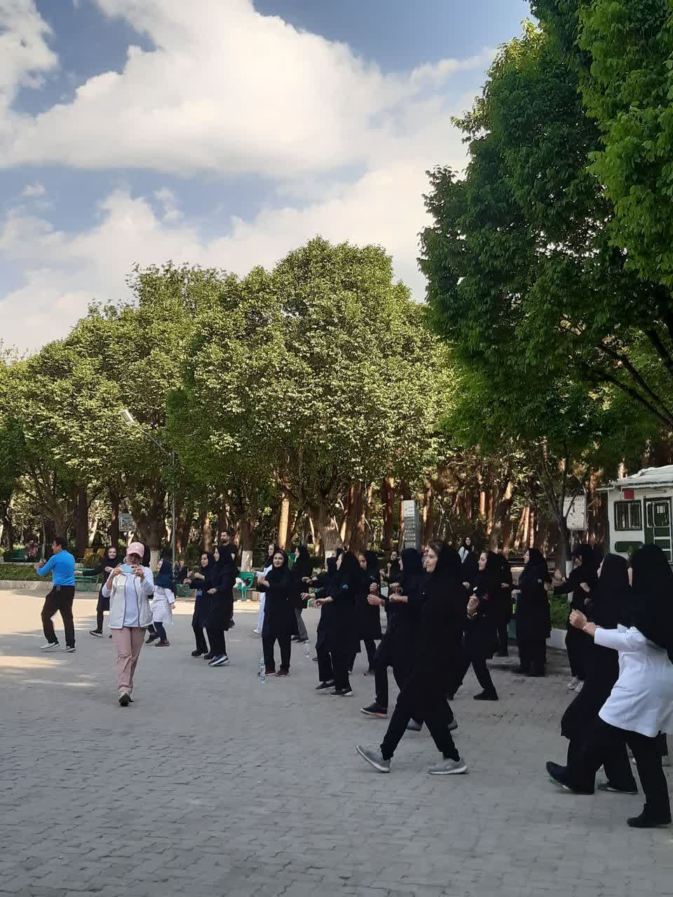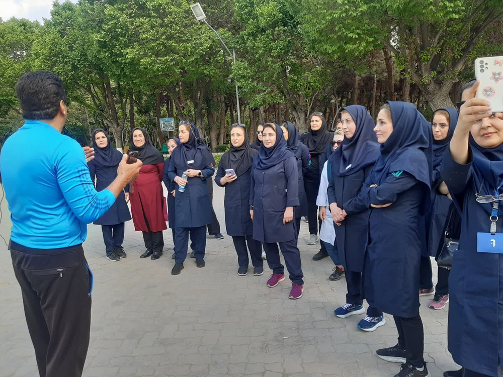 همکاران تیم پرستاری پس از یک پیاده‌روی دسته‌جمعی به سوی پارک لاله، در برنامه ورزش صبحگاهی که توسط تیم ورزشی مستقر در پارک اجرا می‌شد، شرکت نمودند و پس از انجام حرکات ورزشی و بازی‌های گروهی، با روحیه‌ای شاداب و پرانرژی به بیمارستان بازگشتند تا خود را برای یک روز کاری فعال و خدمت‌رسانی به مردم آماده کنند.