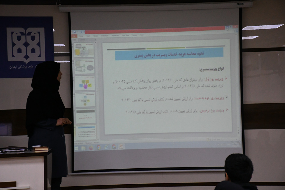 سپس با تاکید بر ثبت دقیق مستندات پرونده بیماران اعم از ویزیت های انجام شده توسط پزشکان و خدمات درمانی ارائه شده در خصوص اهمیت رفع نواقص و تکمیل پرونده های ارسالی بیماران به واحد مدارک پزشکی در اسرع وقت برای  اسکن پرونده ها جهت رسیدگی الکترونیکی، بررسی اوراق مثبته برای تایید بیمه از بیماران،  همچنین راهنمایی بیماران فاقد بیمه به واحد مددکاری ، ضرورت بررسی مبلغ هزینه بیماران تاسقف معین و الزام به ارجاع بیمار به واحد صندوق برای شارژ ودیعه میان دوره، به روز رسانی شناسه بیمه ای در راستای به حداقل رساندن موارد خط‌ا دراستحقاق سنجی بیمه ای توضیحاتی  ارائه شد.